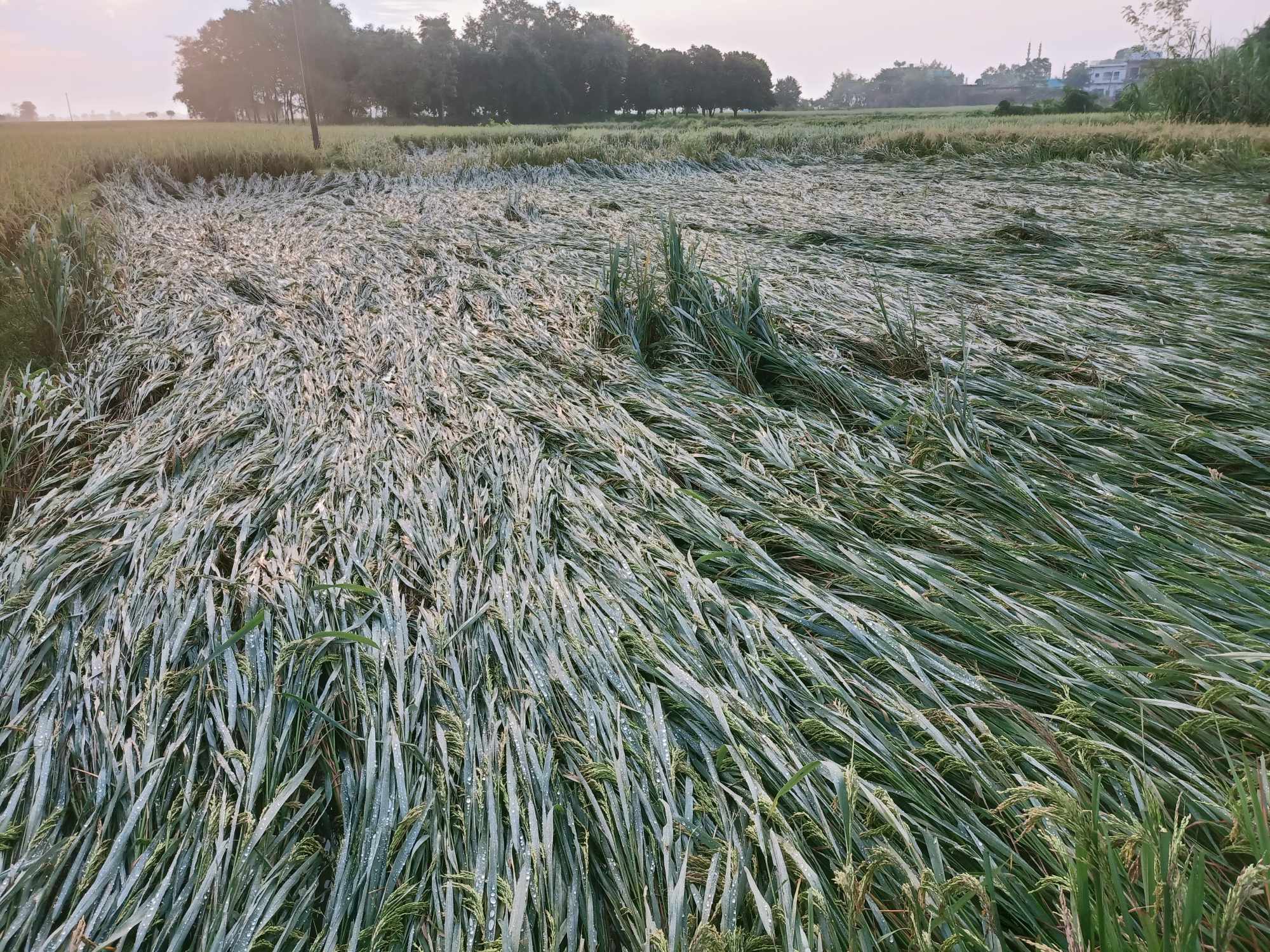 अर्का किसान राजेश यादवको खेतमा धान पाकेर बाला झुलेका छन् । वर्षाको डरले धान नकाटेका यादवको खेतमा सोमबारको हावाहुरीसहितको वर्षाले क्षति पुर्याएको छ । ‘‘हिजोको वर्षा र हावाहुरीले धान भाँचेको छ’’, उहाँ भन्नुहुन्छ, ‘‘अझै वर्षा भएमा धानबालीमा धेरै क्षति हुन्छ । धान घर भित्र्याउने बेलामा हरेक वर्ष किन वर्षा हुन्छ होला ।’’