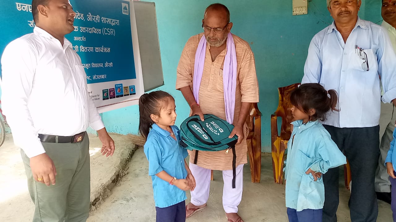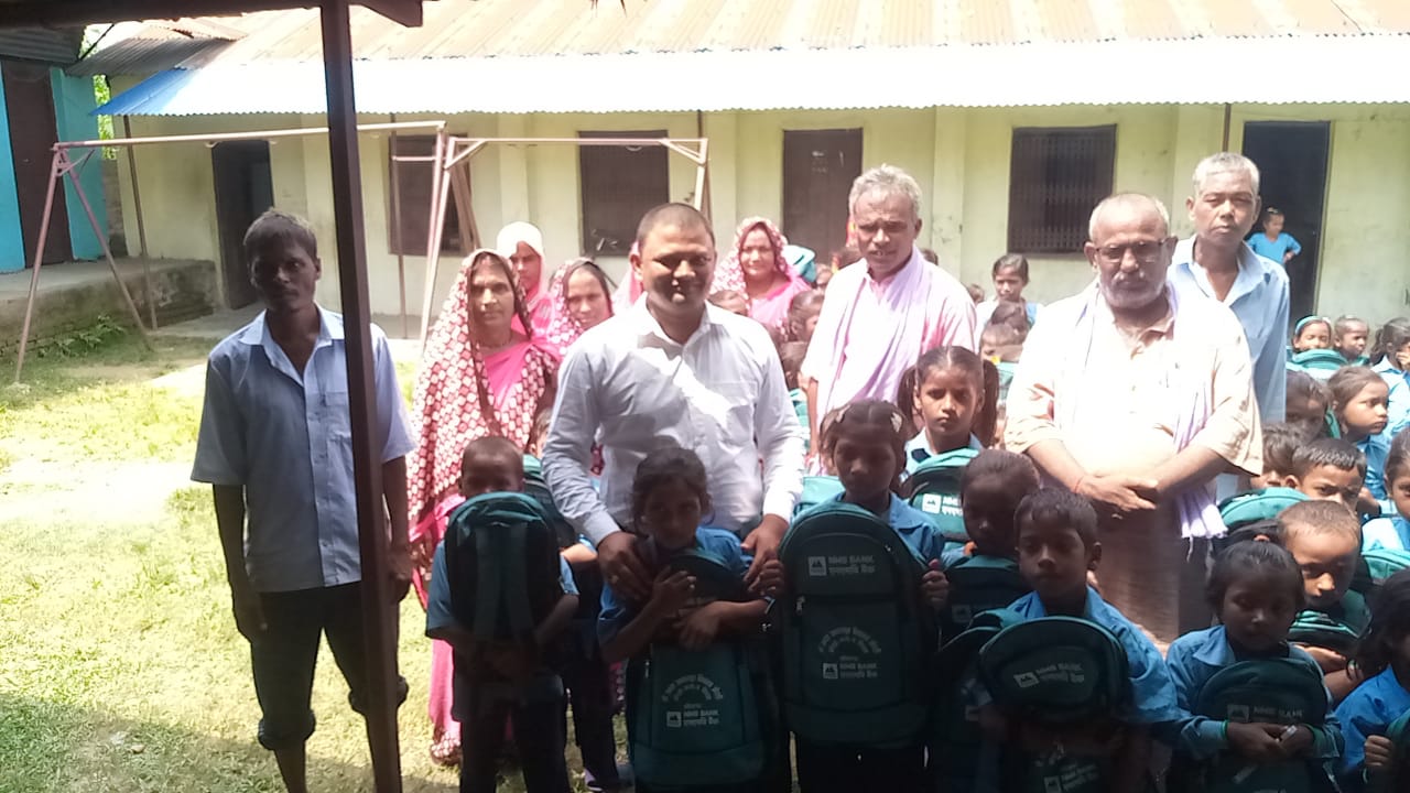 सिरहा,बरियारपट्टी: NMB बैंकको सिरहा औरही शाखाले आफ्नो सामाजिक उत्तरदायित्व कार्यक्रम अन्तर्गत औरही गाउँपालिका वडा नं. -५ मा रहेका श्री जनता अधारभुत विद्यालयमा शैक्षिक सामग्री वितरण गरेको छ। बैंकले विद्यार्थीहरूको शैक्षिक गुणस्तर सुधार गर्ने उद्देश्यले ब्याग-१०२ थान , कापी-५१० थान ,पेन्सिल -१०२ प्याकेट,कटर-१०२ प्याकेट ,इरेजर-१०२ प्याकेट लगायतका शैक्षिक सामग्रीहरू वितरण गरेको छ।